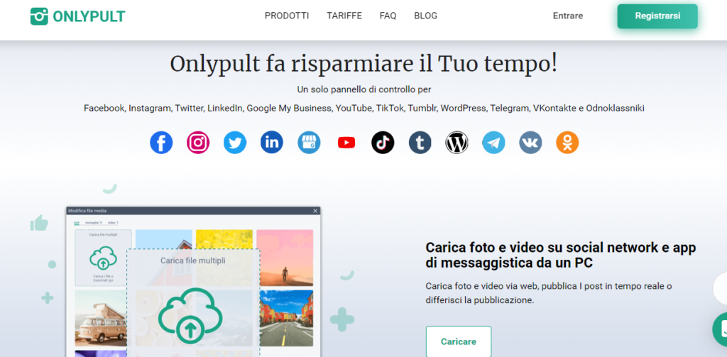 E’ stato uno degli ultimi tool che abbiamo provato e possiamo affermare che funziona in modo semplice ed intuitivo. Permette di gestire e pianificare da desktop sia post che storie. Onlypult permette di programmare le stories ma si tratta di contenuti con grafiche già create, realizzati con altri strumenti editor grafici (quindi niente stickers tipici di instagram). Purtroppo non ha una versione gratuita, ma prima di acquistare l’abbonamento puoi provare ad utilizzarlo gratuitamente per 7 giorni.